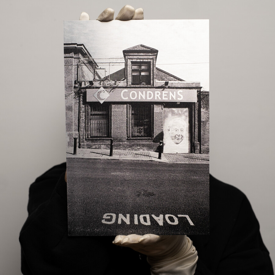Black and white analogue photograph scanned and directly printed onto brushed silver aluminium. Framed prints also available - Get in touch for options and prices.