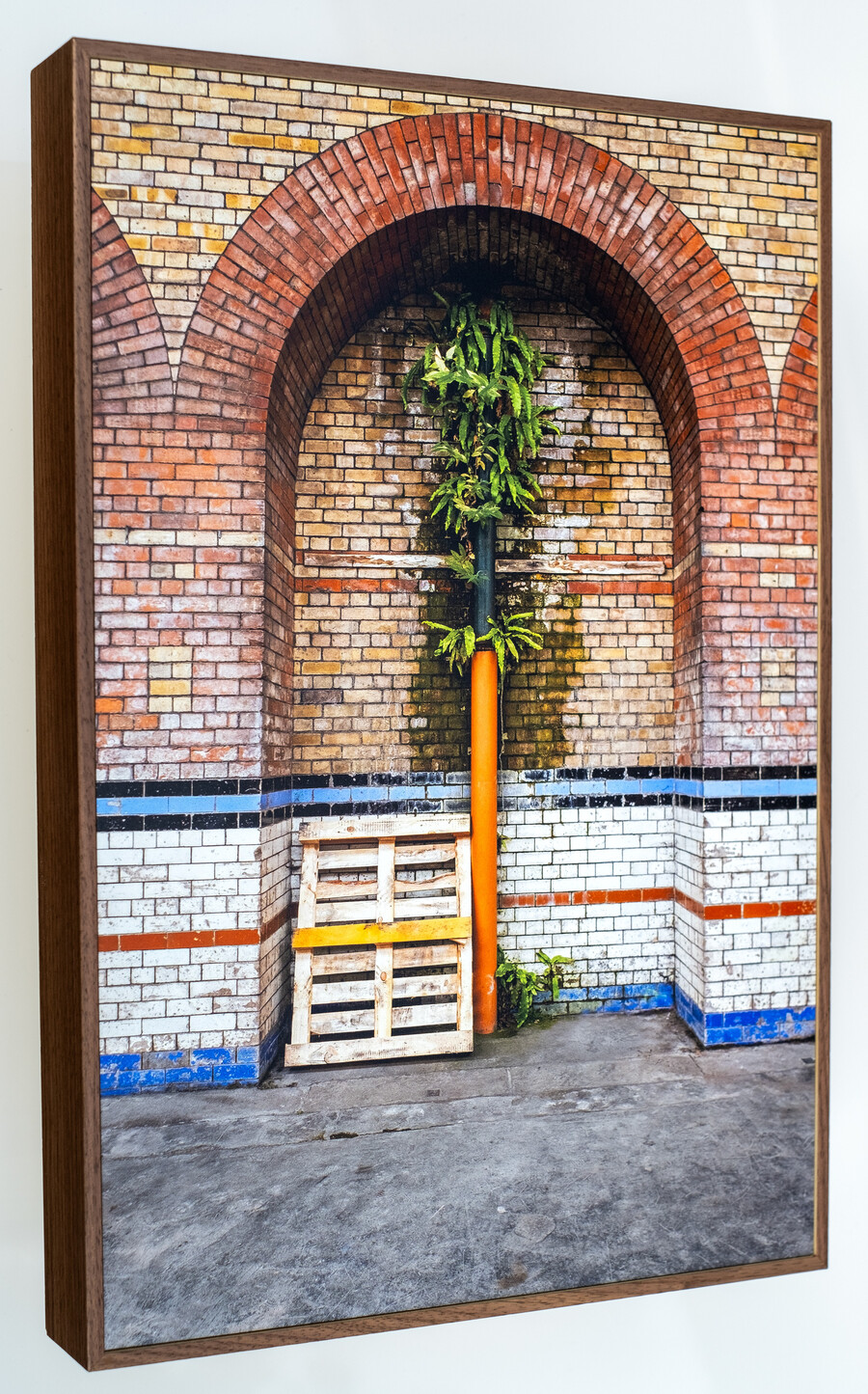 Archival colour photograph printed directly on aluminium dibond with walnut box frame.