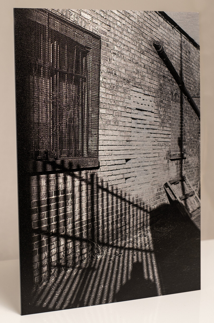 Black and white analogue photograph scanned and directly printed onto brushed silver aluminium. Framed prints also available - Get in touch for options and prices.