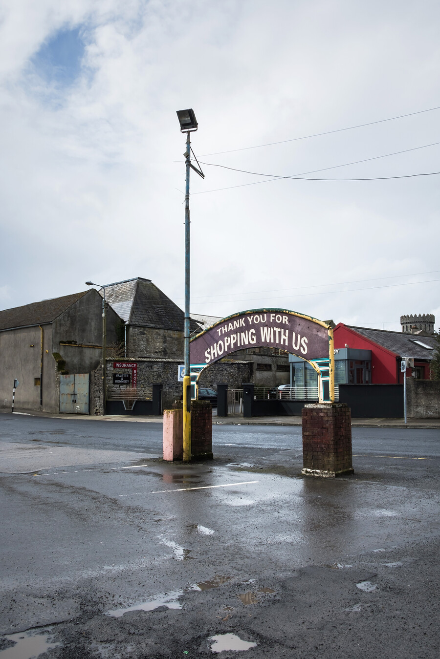 The tiny hand painted arch at the carpark exit. Many shapes and sizes of cars would have passed under this arch over the years.