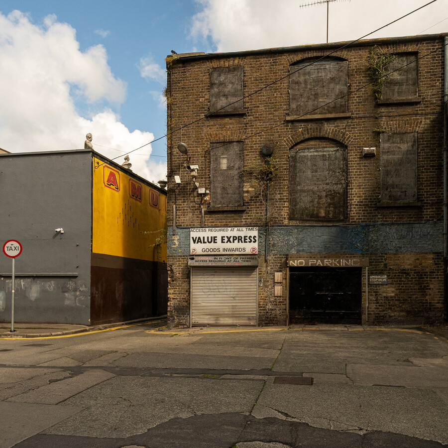 This particular corner by a laneway off Abbey street always draws me in. The old dark brick of the building in contrast to the brightly coloured laneway. The metal grips covering what are probably beautiful old windows. The plants growing where they can. The simple aged signage telling you not to park in front of it yet it is very rare not to have cars and vans blocking the whole corner. Any days I glance up while passing on the Luas the area is packed with cars. It was pure luck the day I went in to take this photo that the area was clear.